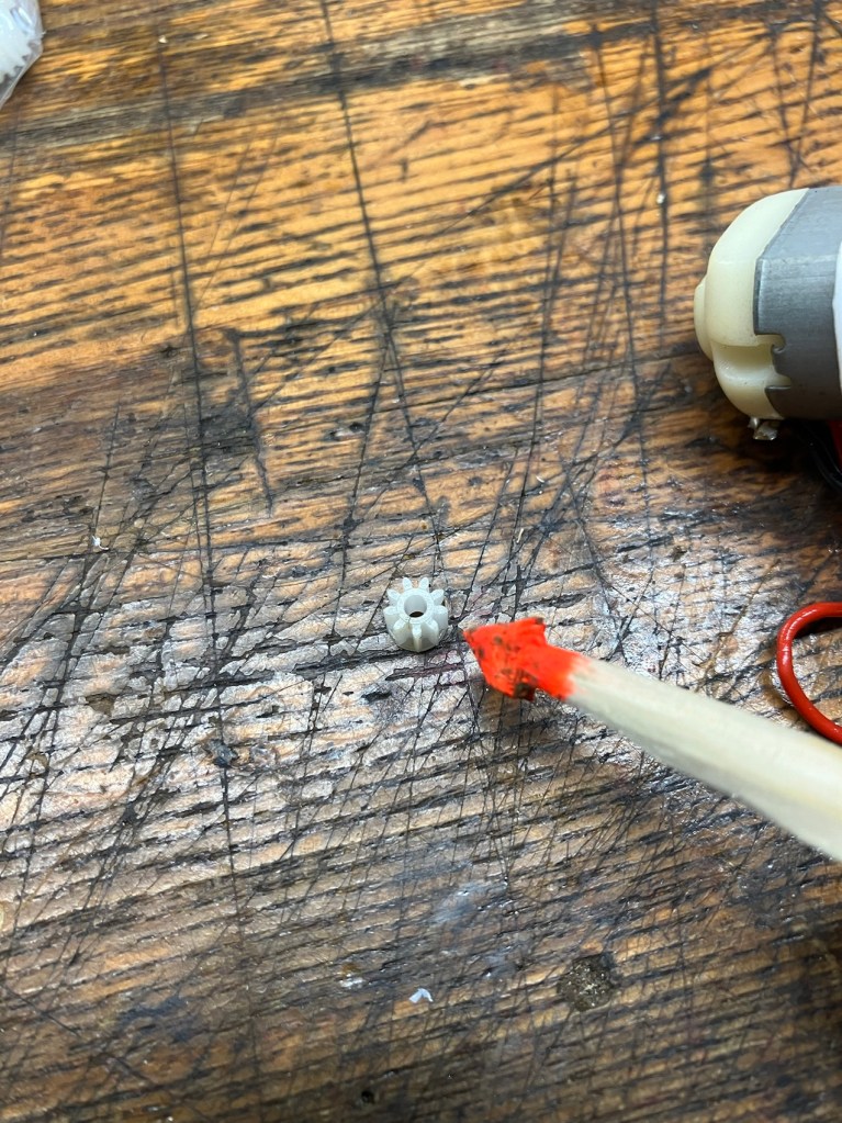 モーター直結歯車が割れてました。最も力が掛かる歯車で良く有ります。日本オモチャ病院で買っていた歯車がピッタリでした。