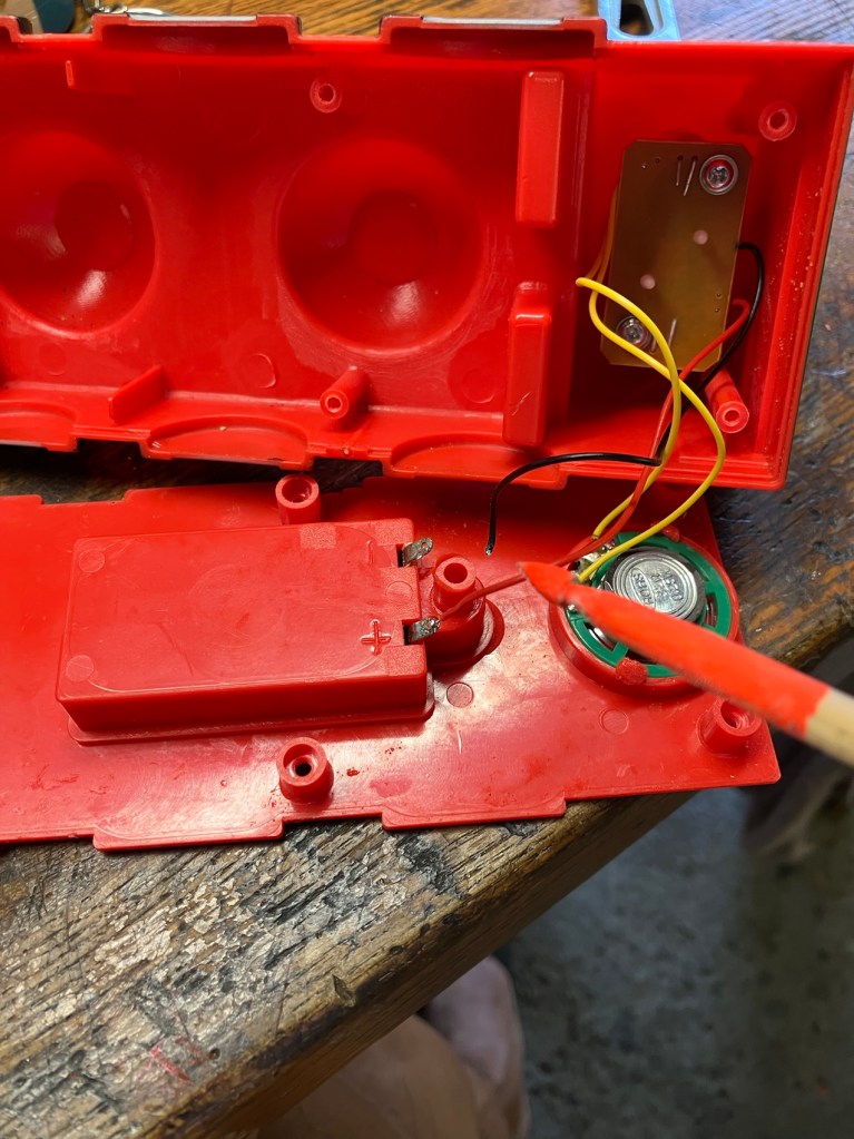 これはアンパンマン?どこか違うなー???。電池ボックスの接点不良とIC回路のコード切断でした。