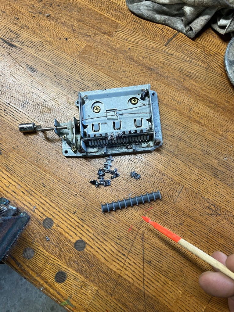 滋賀県からの依頼です。以前と同じオルガニートですが、全て同じトラブルの様です。兎に角何々国のプラスチックは全く用をなしません。以前日本オモチャ病院の3Dプリンターで作って貰っていた同じ部品が一個ありましたので、これで代用しました。
