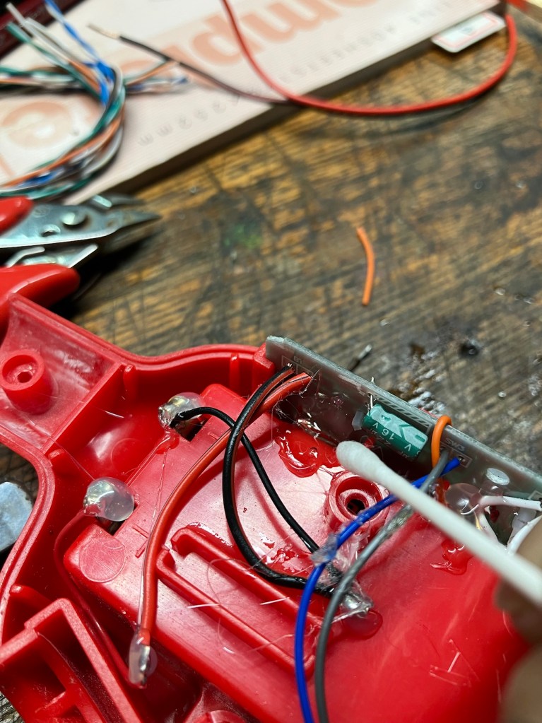 強く押しても基盤が曲がらないように基盤の裏にグルーガンで隙間に充填してヒビが入り難くしました。