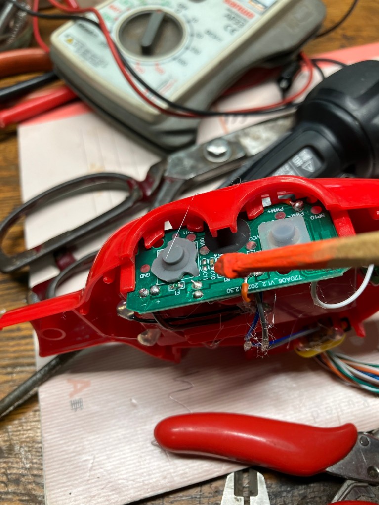 この掃除機おもちゃの持病は基板クラック、故障原因の切り分け診断が大変でしたね。