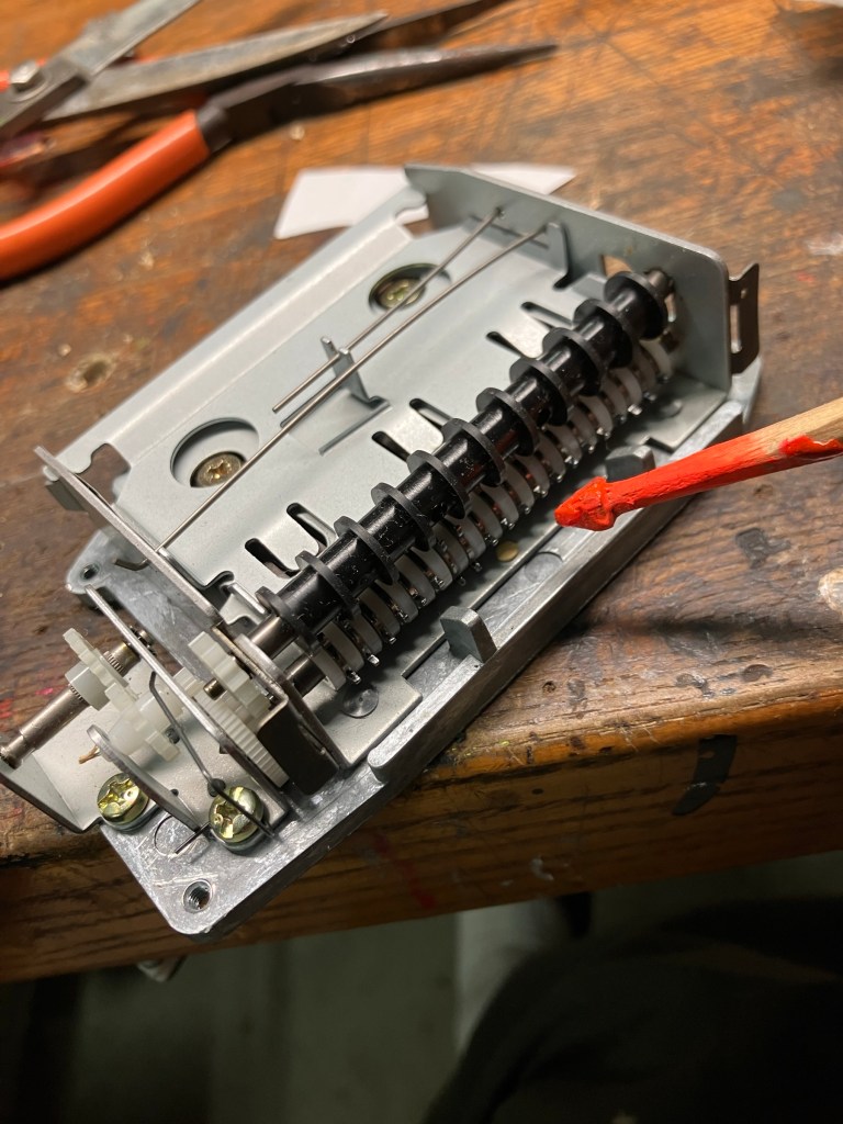 神奈川県から依頼がありました。いつもの楽譜送りのローラーの損傷ではなくて、引っ掛けローラーの固着でした。潤滑スプレーを掛けて何度か無理矢理動かしたら正常に動く様になりました。