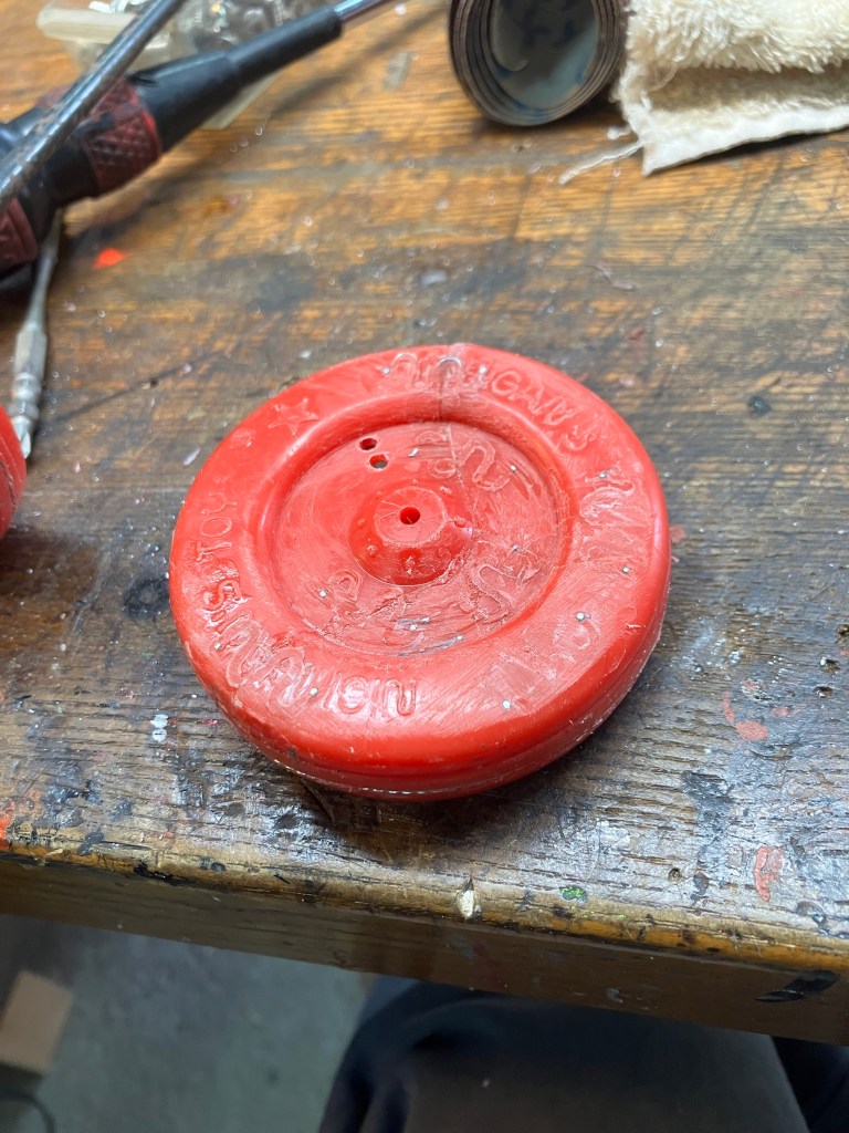 運送途中で車輪が破損したとの事で弁償の為に運送会社さんから依頼がありました。おじいちゃんがお孫さんの為に送ってあげたみたいです。相当古そうなオモチャで私の時代(昭和)の物です。同年代の方が大切に持っていて次の世代に繋げて行こうと言う思いは伝わってきます。しっかり治します。